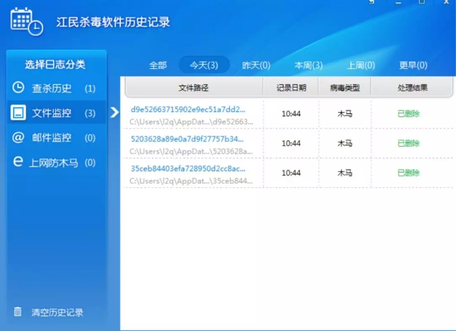 江民防毒軟體已經全面攔截該病毒,並提醒使用者開啟檔監控功能。
