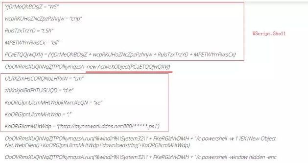同時,惡意腳本也是被經過混淆處理的,目的在於增加逆向的難度。惡意腳本片段如下: