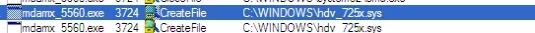 11. 拷貝到關鍵目錄之後,“擦除器“進程則啟動cmd進程執行命令”sc create hdv_725x type= kernel start= demand binpath= WINDOWS\hdv_725x.sys 2>&1 >nul”,目的是向驅動管理器註冊該驅動,聲明該驅動的啟動類型、映射檔等。